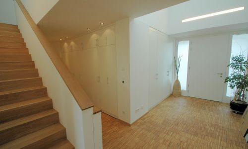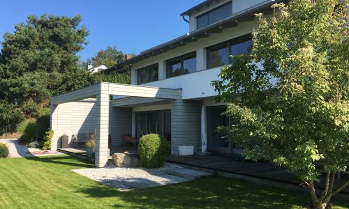An einem Hang mit traumhaftem Ausblick nach Westen liegt dieses Einfamilienhaus mit großzügigen Räumen und einem klaren, zeitlosen Grundriss. Die Einrichtung und der Ausbau wurden auf wenige, sich wiederholende Materialien reduziert, was zu einem harmonischen und ruhigen Ganzen führt. Durch Vorinstallationen ist dieses Haus für zukünftige Technologien gerüstet.