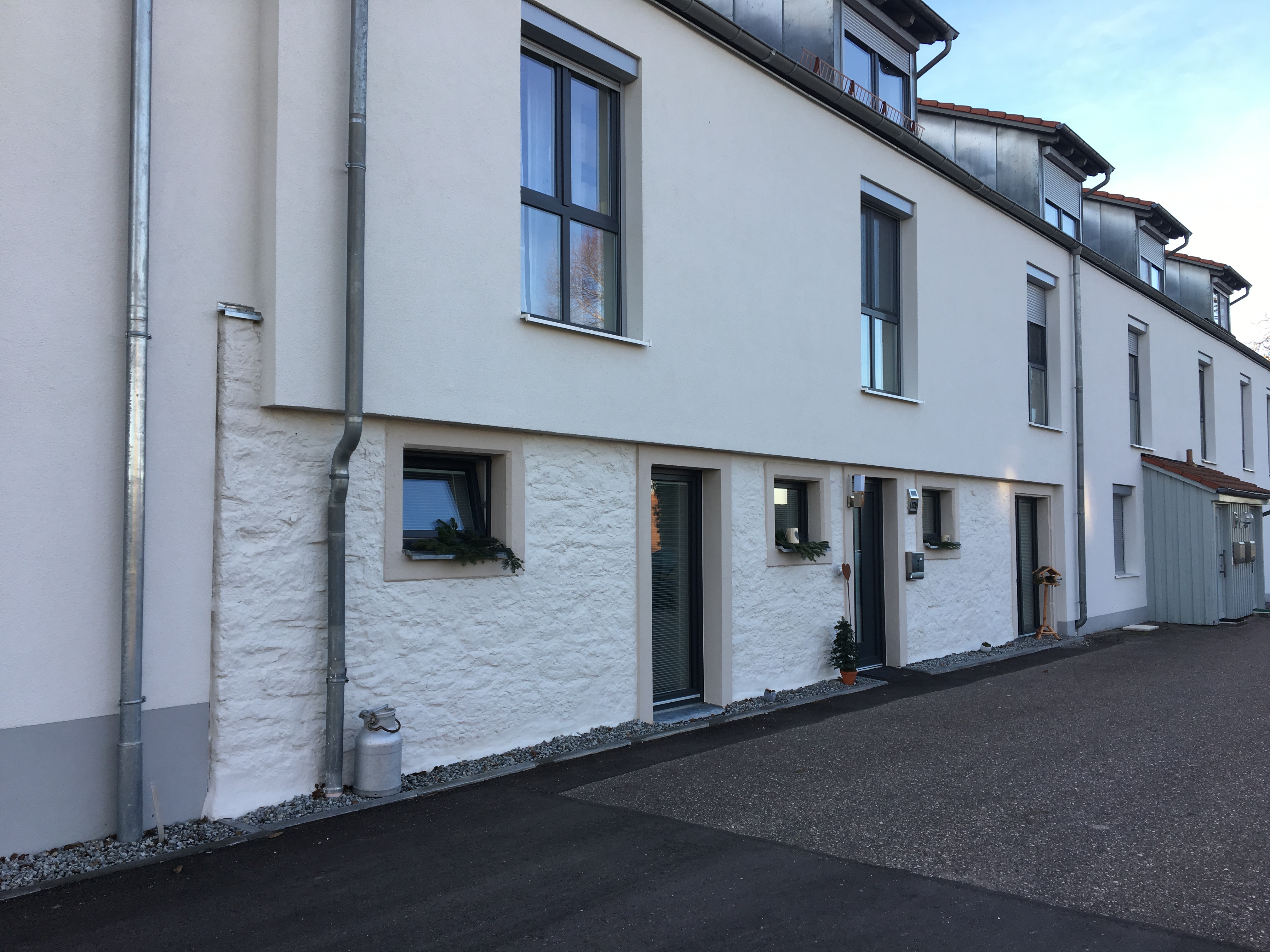 An das bestehende Studentenwohnheim, das ich im Rahmen meiner Angestelltentätigkeit Ende der 80-er Jahre fertig gebaut hatte, bat mich der Bauherr, ein neues 6- Familienhaus in den Grenzen des Altbestandes zu entwerfen und realisieren. Das angrenzende, nicht unterkellerte Studentenwohnheim musste für den Kellerneubau unterfangen und angeschlossen werden.